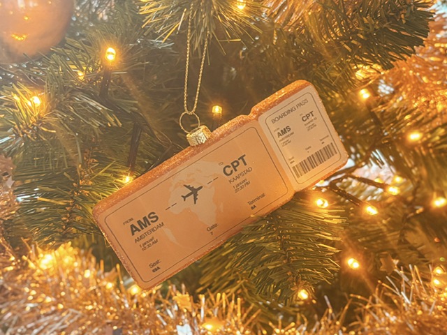 Zo blij met onze kerstbal van Yup in de boom, deze boarding pass naar Kaapstad!