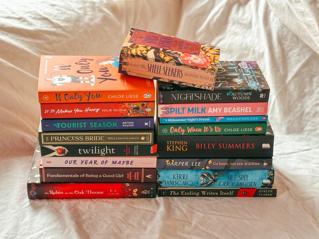 En dit is mijn Vinted-buit! Heeeeel tevreden mee! The Shell Seekers en Ga heen, zet een wachter lees ik dit jaar met Janneke. Billy Summers kocht ik vrij last minute, en hebben Vin en ik samen gelezen in Lapland (ZO LEUK, samen een boek lezen!!). Ik wil graag de Bergman-serie van Chloe Liese in de kast hebben staan, en deel 1 en 6 kon ik via Vinted komen. En tenslotte nog vrij random, Our Year of Maybe en Spilt Milk. Dat laatste boek is door de flaptekst op mijn radar verschenen.